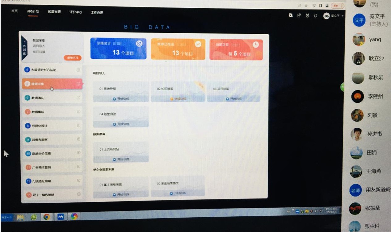 为积极响应公司新财经改革,推动营销学科数字化转型,为社会培养更多“营销+大数据”复合型人才,2023年3月1日晚上19:00,365英国在线体育市场营销系全体教师参加了用友新道公司的《营销大数据》课程虚拟仿真培训。该课程通过搭载用友大数据分析平台,给员工创设一个真实的数字化商业环境,提供一个成熟稳定的教学实验平台,通过基于企业真实场景的实战训练,培养员工对于数字化分析工具的熟练应用能力。培训会由营销系系主任李建州博士主持,365英国在线体育副经理王胜洲指导。