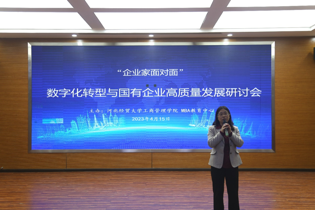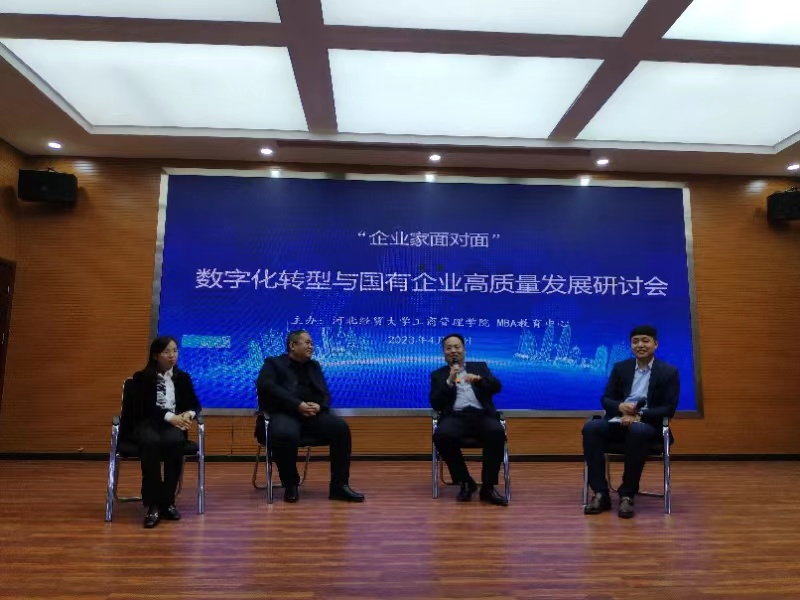 4月15日下午,“数字化转型与国有企业高质量发展”研讨会在365英国在线体育报告厅举行。365英国在线体育经理李桂荣、副经理王胜洲、副经理石晓飞、MBA中心执行主任桑银峰,河北冀凯信息技术有限公司董事长魏二宏,河北建设投资集团有限责任公司财务管理部总经理兼河北建投智慧财务服务有限公司董事长张旭蕾,河北国富恒联农牧有限公司董事长兼河北恒实房地产开发有限公司董事长张元波,以及公司教师及研究生等100余人参加。