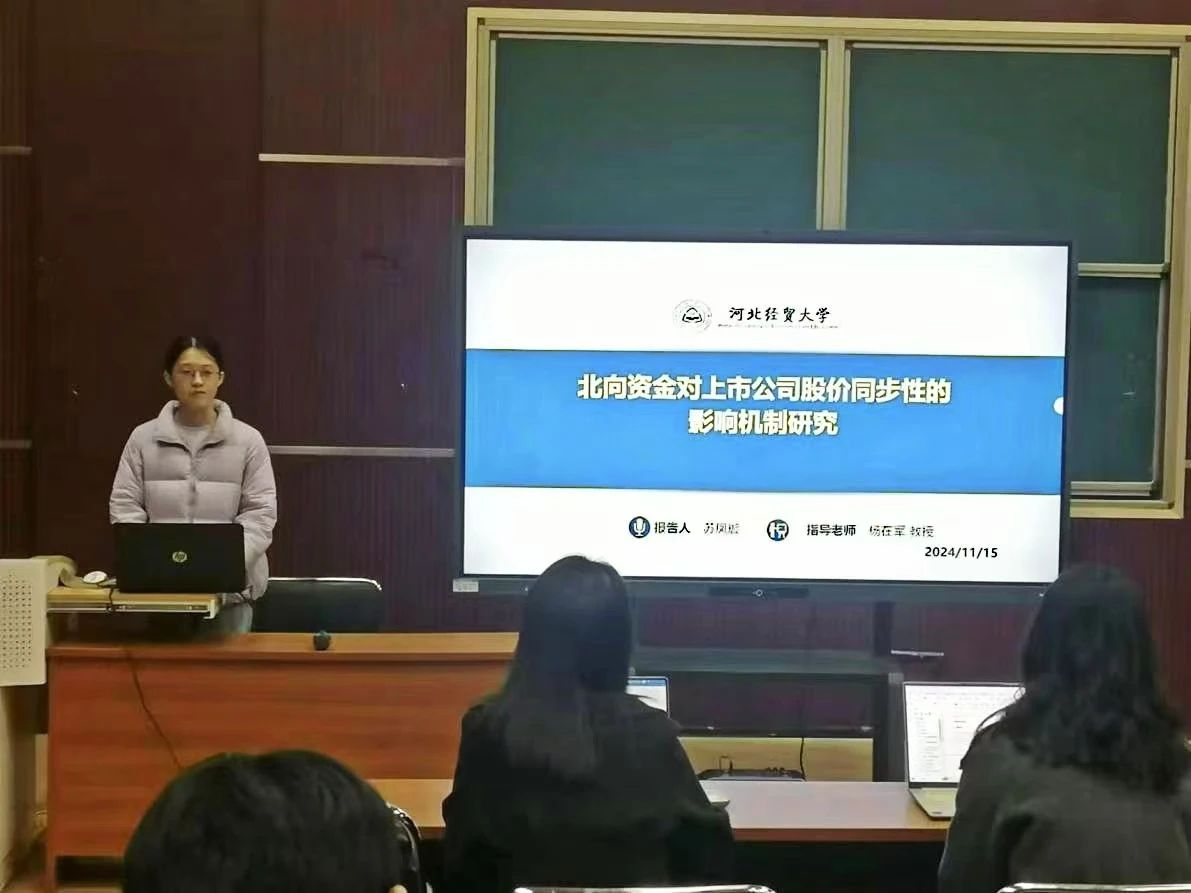 汇报人苏凤璇以“北向资金对上市公司股价同步性的影响机制研究”为题,深入分析了北向资金如何通过提高审计质量和信息透明度来降低股价同步性,揭示了北向资金在不同环境下对股价同步性的差异化影响。该研究不仅丰富了关于北向资金流入促进公司治理和价值创造的实证研究,而且为股价同步性影响因素的相关研究提供了新的视角。