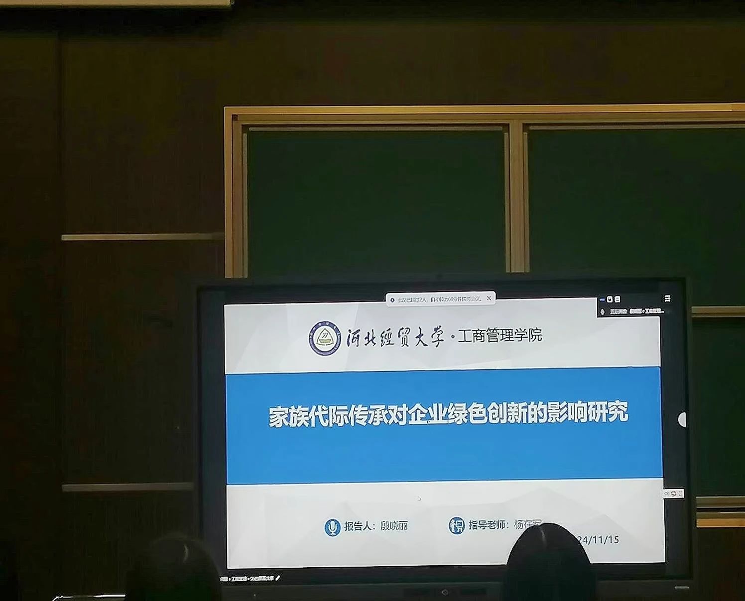 汇报人殷晓丽以“家族代际传承对企业绿色创新的影响研究”为题,基于社会情感财富理论和融资约束分析,探讨了家族企业代际传承与绿色创新之间的关系,揭示了中国企业在绿色发展初期面临的投资和融资难题。由于家族企业在中国民营经济中占有重要地位,其代际传承与绿色创新的关系对企业的可持续发展具有决定性影响。该研究为促进民营企业高质量发展提供了政策启示。
