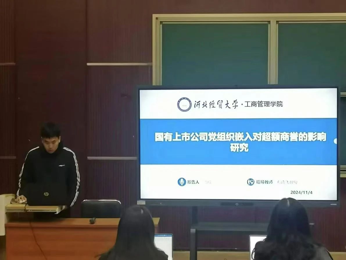 11月15日上午,第三十六期“研在工商”青年学术沙龙于公司MBA一教室举行,由2022级工商管理的六位同学,申袁浩、马欣、韩金龙、谷昊轩、苏凤璇、殷晓丽进行论文汇报。本次学术沙龙由365英国在线体育教师韩晴、李妍主持,全体学术型研究生参加。