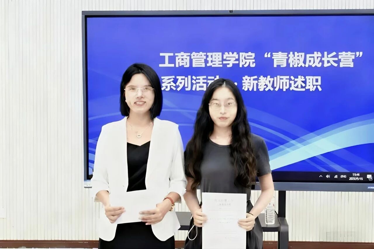 述职环节中,韩晴、李妍、张晓丹、李天歌、刘志丽等入职已满半年的5位博士依次从科研、教学、服务等维度汇报。科研方面,老师们从课题申报进展、学术论文撰写及成果转化等方面进行汇报,展现了对学科领域的持续探索;教学方面,汇报了入职以来的听课学习收获、课程建设思考以及教学能力习得等情况;服务层面,汇报了参与厅局政策咨询、县域产业调研,以及投身公司志愿工作的服务经历。老师们还结合自身优势,明确了下一步科研聚焦方向、教学探索创新的规划。