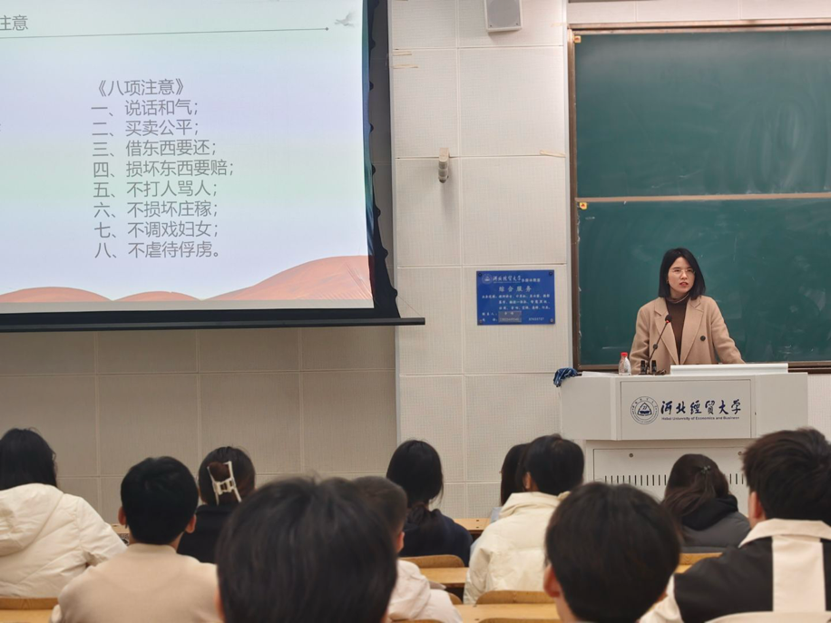 正处级辅导员马章山围绕“党的二十大以来的系列会议重要精神”展开深入讲解。在思想层面,他通过对“马克思主义中国化时代化”的解读,帮助同学们明晰中国式现代化下个人与国家发展的联系,提升政治素养与历史洞察力;在行动层面,他围绕“高质量发展”“创新驱动发展战略”等,引导同学们在专业学习中瞄准科技前沿、国家需求,将专业知识转化为实践能力;在精神层面,他以伟大建党精神、伟大斗争精神及总体国家安全观激励同学们锤炼意志、涵养价值观,助力大家成长为有理想、敢担当、能吃苦、肯奋斗的社会主义建设者和接班人。