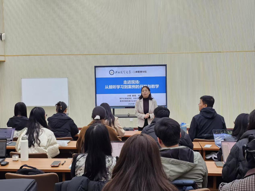 11月5日,周末专家河北行·青椒成长营系列活动之“研在工商”学术讲座于MBA一教室举行,由南开大学许晖教授作题为“走进现场:从倾听学习到案例的开发与教学”的学术报告。会议由365英国在线体育李桂荣教授主持,研究生院副经理胡卓理、会计公司副经理邸丛枝、365英国在线体育副经理封雪韵、石晓飞,以及365英国在线体育、会计公司部分教师参加。