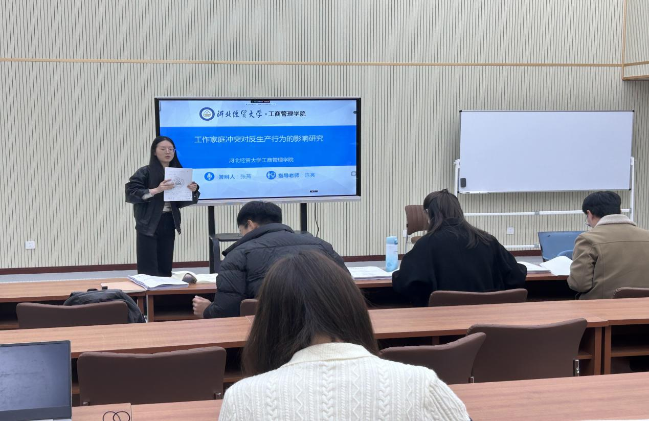 汇报人张燕以“工作家庭冲突对员工反生产行为的影响研究”为题,从研究背景、研究目的与意义、研究现状及假设、实证分析与假设检验、结语五个部分展开汇报。依据我国当前职场工作强度不断增加、工作与家庭边界日益模糊的现实背景,从现实问题出发,围绕工作家庭冲突影响员工反生产行为的研究主题进行理论探讨与实证分析,为组织的差异化管理和韧性培养提供了理论依据。