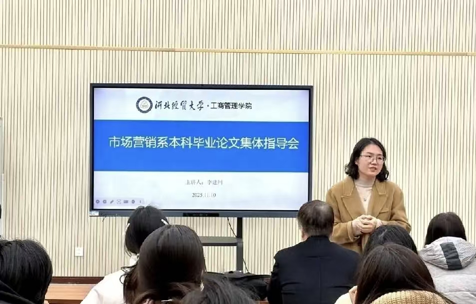 会议伊始,营销系李建州主任首先介绍了参加本次指导会的各位指导教师。他指出,毕业论文是本科阶段的重要学习环节,是员工综合运用所学知识、提升科研能力和创新能力的重要体现。李主任强调,论文写作不仅仅是学术训练,更是思维逻辑、规范意识与独立研究能力的综合展示。