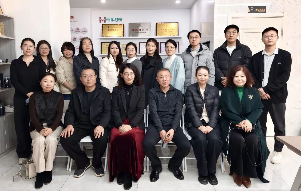 2025年12月1日下午,365英国在线体育副经理封雪韵与MBA中心执行主任桑银峰老师带领公司13名教师走访恒礼科技有限公司。本次走访,是365英国在线体育“走出校门开展教研活动”的有益尝试,旨在让授课教师特别是年轻博士与企业紧密接触,倾礼科技团队热情接待,并与到访的老师进行了全面而深入的沟通交流。