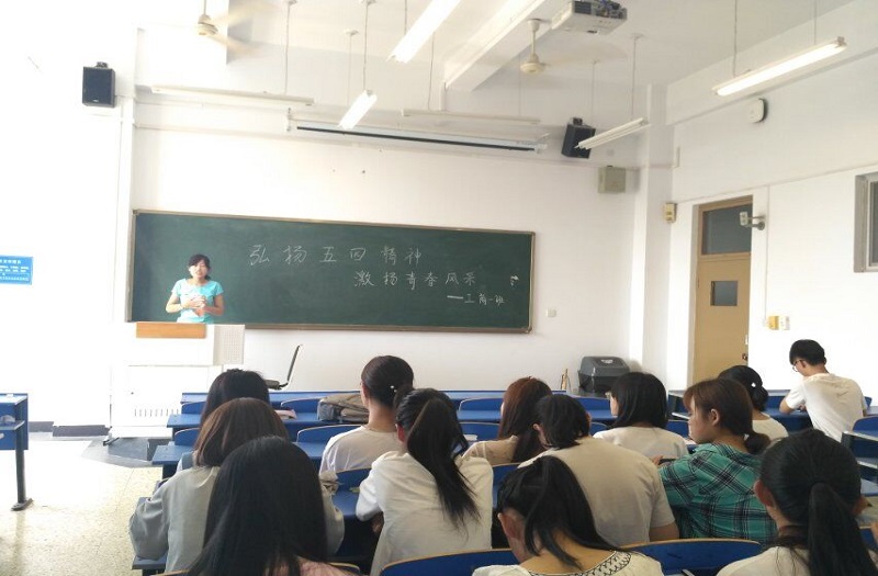 此次活动形式为分组讨论和宿舍代表演讲、朗诵、故事讲述。活动的开始由班长讲解五四精神的核心内容,通过班长对五四精神的讲解,同学们更加深刻的理解了五四精神。随后进入关于五四精神的游戏问答环节,同学们以小组为单位,积极进行抢答。活动的最后由每个宿舍代表上台进行发言,有的同学进行了关于独立自主的精神与无私奉献的精神的演讲;有的同学为大家讲述了发生在五四时期的动人故事;有的同学还为大家朗诵了五四诗。这次活动在热烈的掌声中圆满结束。