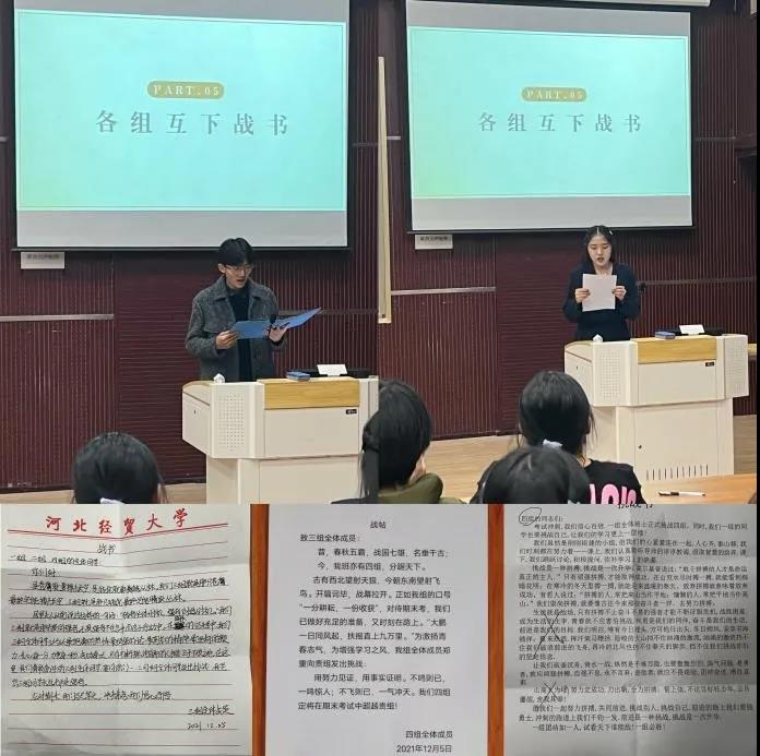 最后,唐珑荧、庞家骏通过做游戏的方式,带领同学们进行考前心理压力疏导,缓解同学们考前的紧张心情,让同学们在游戏中放松身心,化压力为动力。游戏过后,同学们在纸上立下战帖,激励自己努力学习,认真备考。