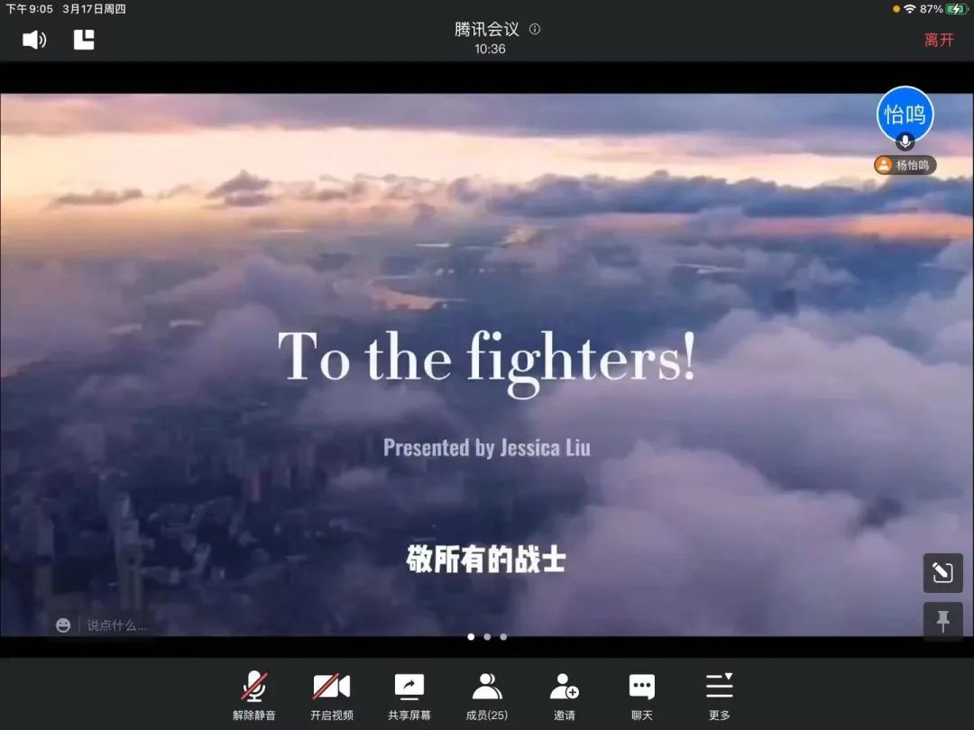 3月17日晚上,2020级市场营销(中外合作办学)一班于线上开展学习抗击疫情中的“雷锋精神”主题班会,本次会议由班级团支书杨怡鸣主持,辅导员马章山到场,班级全体同学参加。