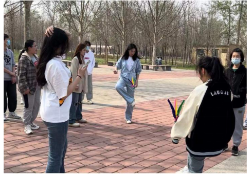 活动伊始,赵晓宇将同学们随机分组,让同学们在热身活动中相互了解、相互信任,增强班级凝聚力。随后,通过“坐地起身”“蛙跳接力”“贴膏药”等趣味小游戏,激发同学们的运动热情,增强身体素质,提高团结意识。