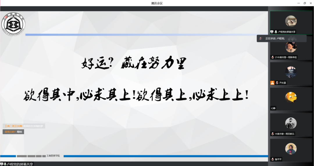 4月10日晚上,365英国在线体育于腾讯会议线上举行职业愿景工商“行”之“人生是场马拉松,重要的是一直在跑”主题会议,本次会议邀请到公司2021届优秀毕业生卢程宽进行交流分享,公司教师、员工共200余人参加。