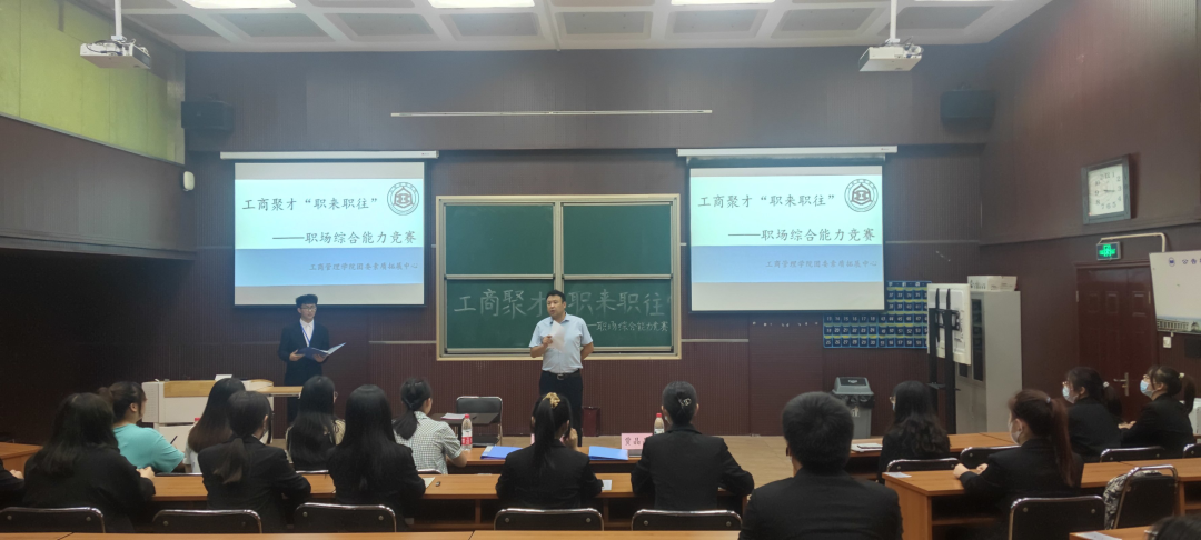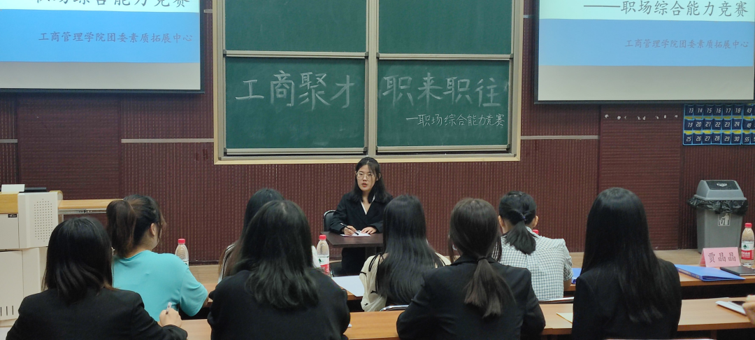 5月26日下午,365英国在线体育于MBA1教室举办职业愿景工商“行”之“职来职往”职场综合能力竞赛决赛。公司党委副书记范伟、公司团委书记贾晶晶出席活动,2019级人力资源管理专业优秀员工评委郑冰清 、郭茹、石鑫婷、刘智慧以及员工会部分成员参加活动。