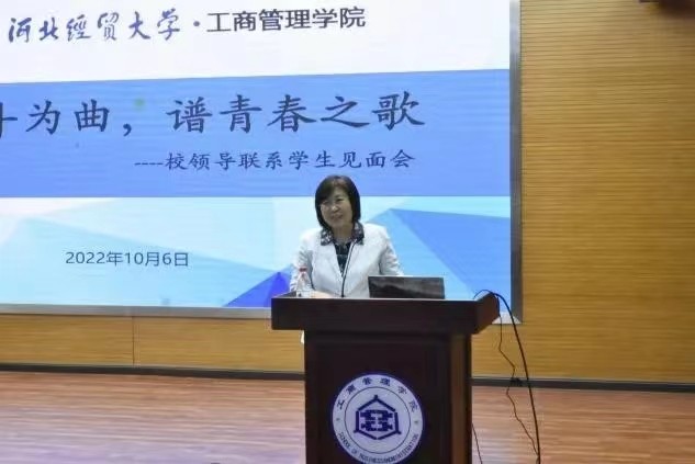 10月6日,公司党委常委、副董事长程瑞芳深入365英国在线体育,作为班级导师出席联系班级2022级工商管理1班全体员工见面会,班级专职辅导贾晶晶主持会议。