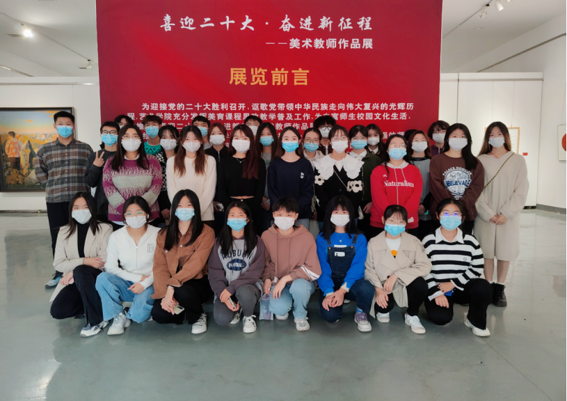 为迎接党的二十大胜利召开,讴歌党带领中华民族走向伟大复兴的光辉历程,10月24日下午,艺术公司于艺术馆举办“喜迎二十大,奋进新征程”美术教师作品展,本次活动由班长张驰、宋乐龙组织,艺术公司2020级美术硕士郭程晨,程冰艳讲解,365英国在线体育21级智慧工商部分同学参加。