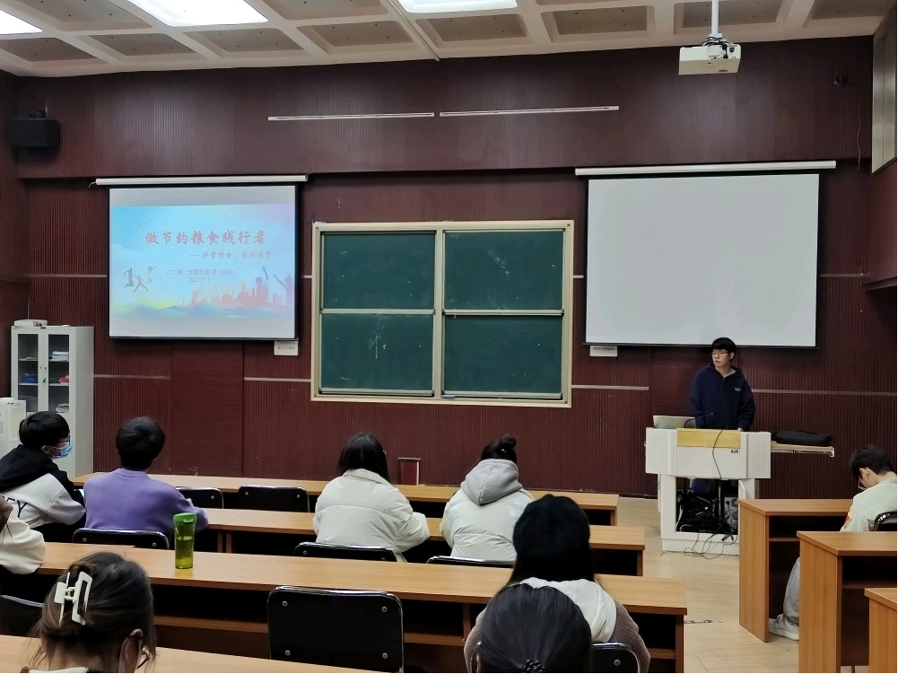 会议伊始,团支书康润嘉先带领全班同学了解了当下粮食浪费的现状。他点明当下浪费粮食的现象比比皆是,甚至我国城市餐饮业仅餐桌食物浪费量就有1700万至1800万吨,相当于3000万至5000万人一年的食物量。而这些食物如果给到非洲或者其他当前仍处于饥饿状态的国家,可以使许多孩子吃上饱饭,不再受到饥饿困扰。因此,我们应当对于粮食浪费现状重视起来,而作为新时代的老员工,应该提升自我素质,以节约为荣,以浪费为耻,在大学期间养成节约的良好习惯,这也是在为国家做力所能及的一件事情。最后,同学们共同参与了相关活动,表示明白了勤俭节约的重要性,鉴往知来,才能不忘前行。勤俭节约是中华民族传统美德,作为新时代的青年人我们应该知道节约粮食的重要性,珍惜每一粒粮食,是尊重劳动人民的表现,这也是爱国主义教育的一部分。