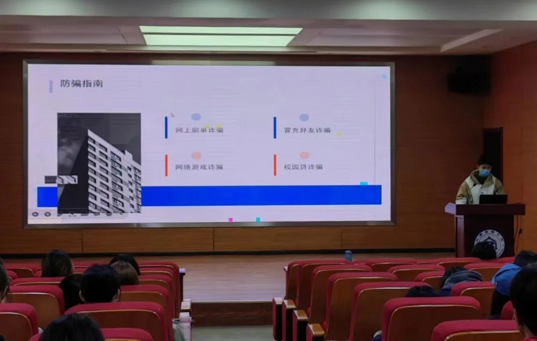 为增强同学们的安全防范意识,提高同学们的安全防范能力,全面普及校园安全常识,3月2日下午四时,2022级工商管理类五、六班于公司报告厅开展“加强安全意识,注重自身防范”主题班会。本次班会由六班李丁云主持,辅导员赵靓丹、王晓东老师到场,五、六班全体同学参加。
