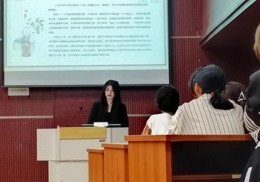 在读书分享中,2021级智慧工商一班王梦雨向我们分享了一本百读不厌的书籍——《习近平与老员工朋友们》。这本书中详细讲述了习近平同志在河北正定、福建、浙江、上海和到中央工作以来,与老员工们交往、交流、交心的故事,真实记录了他对青年员工始终如一的关注、关心、关爱,体现了党中央对青少年成长的高度关注。