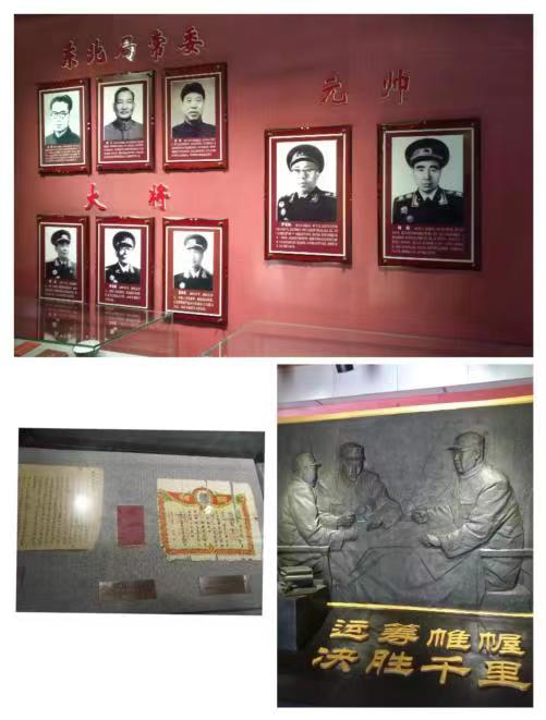 展馆陈列物伴随着解说员的指引,我们来到了四野战史展厅,墙上有战士们奋力抗敌的壁画,有战略指挥图和地形图,有各位元帅、将军的照片姓名;展柜中整整齐齐摆放着将士们的军衣功勋、奖章以及用过的枪支,罗列着战士们在作战过程中用到的器械和手书;展台中央的石碑上刻着“运筹帷幄,决胜千里”几个大字,这是对战士们英勇奋战,有勇有谋最好的诠释。置身于第四野战军纪念馆中,你会感觉到由自脚下块块青砖的古朴以及映入眼帘一木一瓦的典雅。建筑本身是美的,更重要的是,在惊天地泣鬼神的解放战争中,作为前线指挥部的这里曾经上演过永载史册的动人篇章。作为那场波澜壮阔解放战争的见证,第四野战军纪念馆向人们诉说那个时代的故事。