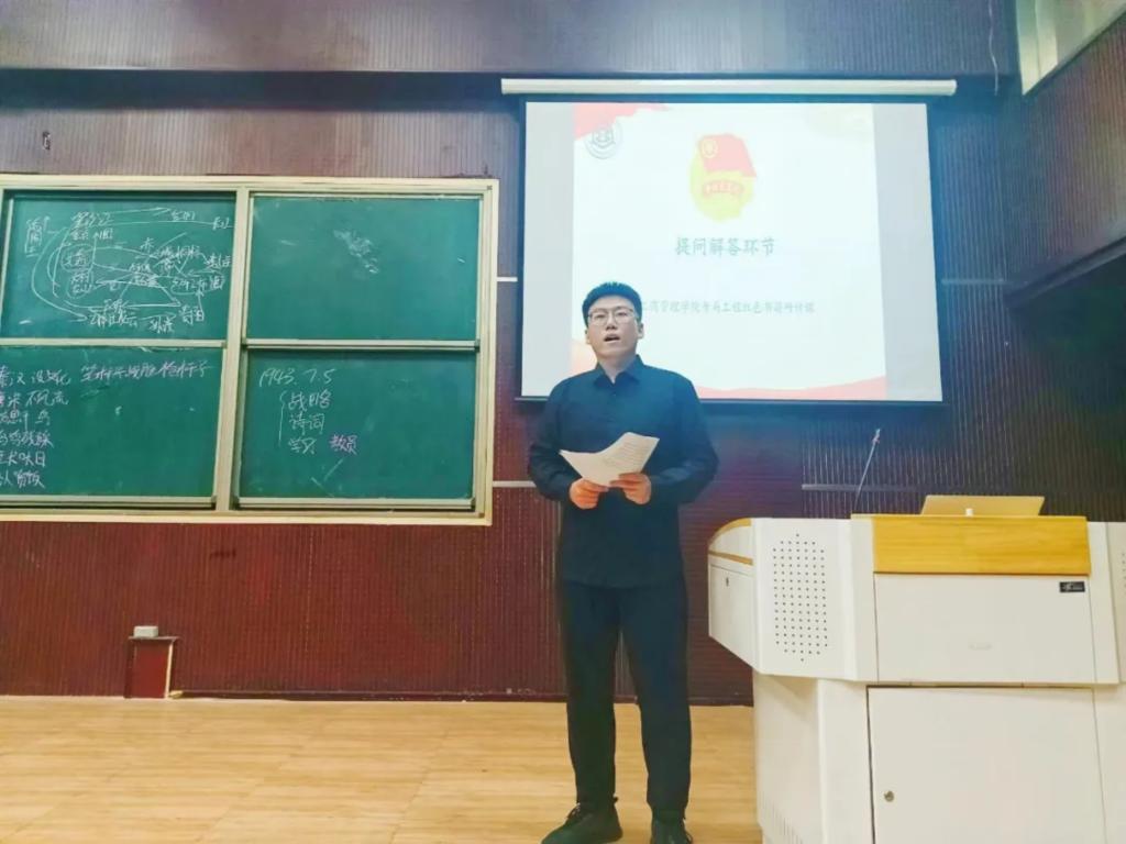 会议伊始,王子穆围绕毛泽东的战略思想、诗词赏析、高尚精神品质等三方面展开对毛泽东思想学习感悟的分享。分享过程中,他借用习近平总书记在纪念毛泽东诞辰一百三十周年纪念日上的发言简要介绍了毛泽东在党的历史上的杰出地位,以便同学们更好地理解毛泽东思想。他提到,学伟人思想品百味人生,学伟人诗词破人生困局,鼓励同学们多阅读红色书籍,从历史伟人的光辉中汲取力量,成就更好的自己。