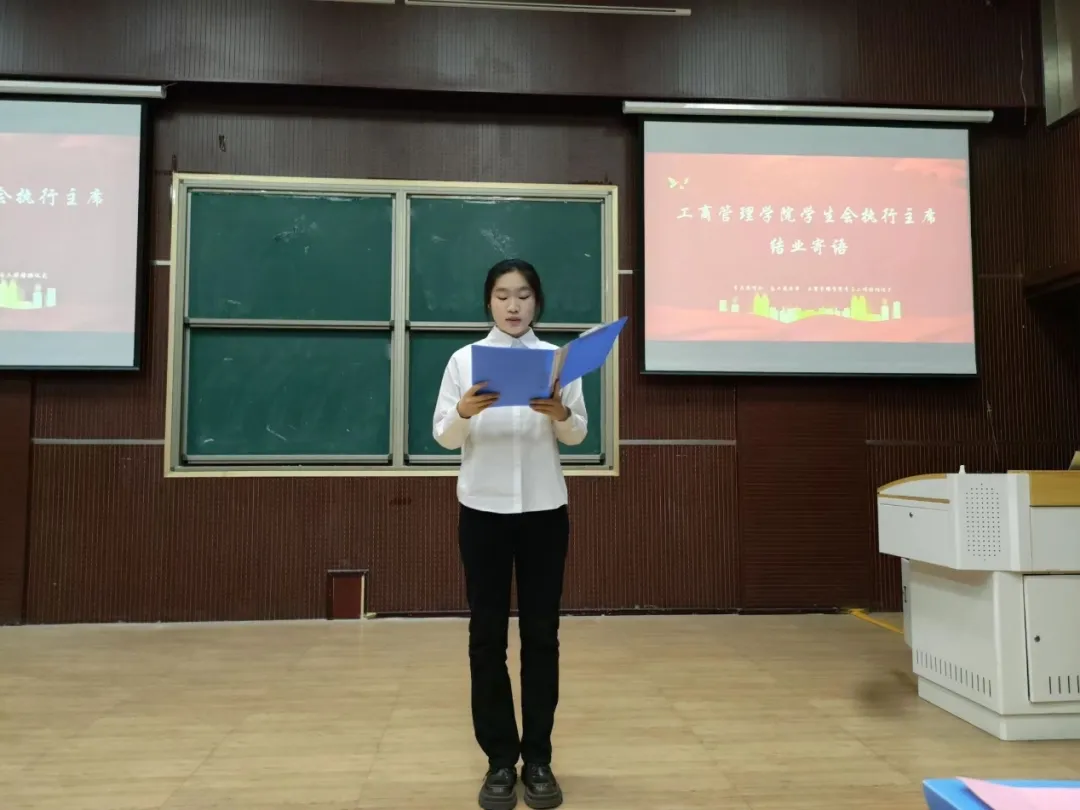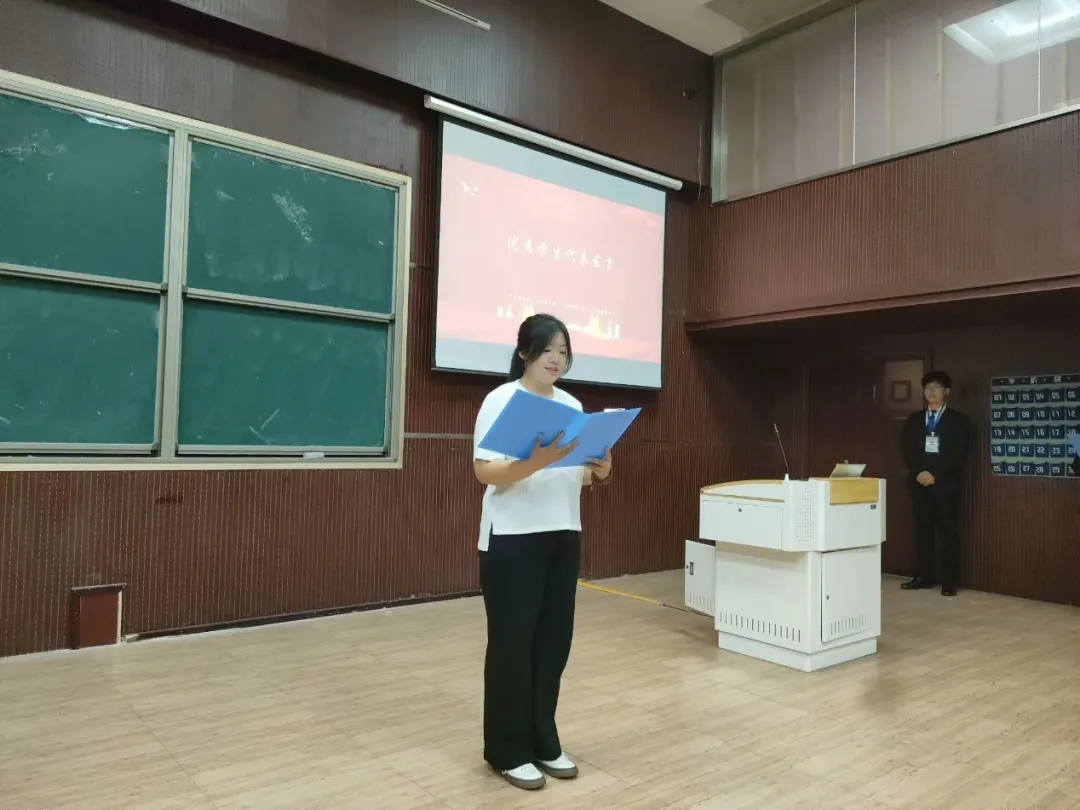 会议伊始,主持人公布青马工程“优秀学员”名单并请优秀学员代表张艺嘉发言,张艺嘉呼吁同学们在今后的学习生活中,牢记空谈误国、实干兴邦的教诲,积极关注国家和世界的发展大势,做时代的参与者,在理论学习和实践锻炼中不断提升自我,让青春脉搏与时代同频共振。