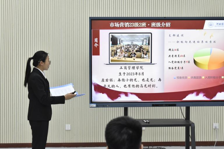 活动伊始,主持人杨佳烨对莅临现场的各位领导、评委老师及员工代表致以热烈欢迎,并简要介绍了本次先进班集体评选活动的目的、意义、评选标准与流程。在展示环节,2023级市场营销2班等竞选班级发言人依次上台,围绕思想建设、学业发展、志愿服务与班级氛围等多个维度,全面呈现了各班在集体建设中所取得的丰硕成果。他们结合生动鲜活的案例与详实数据,不仅展现了扎实的学风与积极的思想面貌,更分享了班级在志愿服务与社会实践中的感人故事,以及温馨融洽、互助共进的班级氛围,充分彰显了新时代老员工团结奋进的班级氛围以及担当有为的社会责任感。