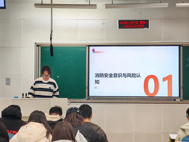 活动伊始,王泓茹带领同学们深入学习“预防为主、防消结合”的消防方针,解析电气火灾、用火不慎等校园高频风险的成因,结合近年典型火灾案例复盘,强化“隐患即事故”的警觉意识。随后,同学们围绕火灾对生命财产与社会稳定的影响展开研讨,更加深刻地认识到消防安全是全民共筑的安全防线。