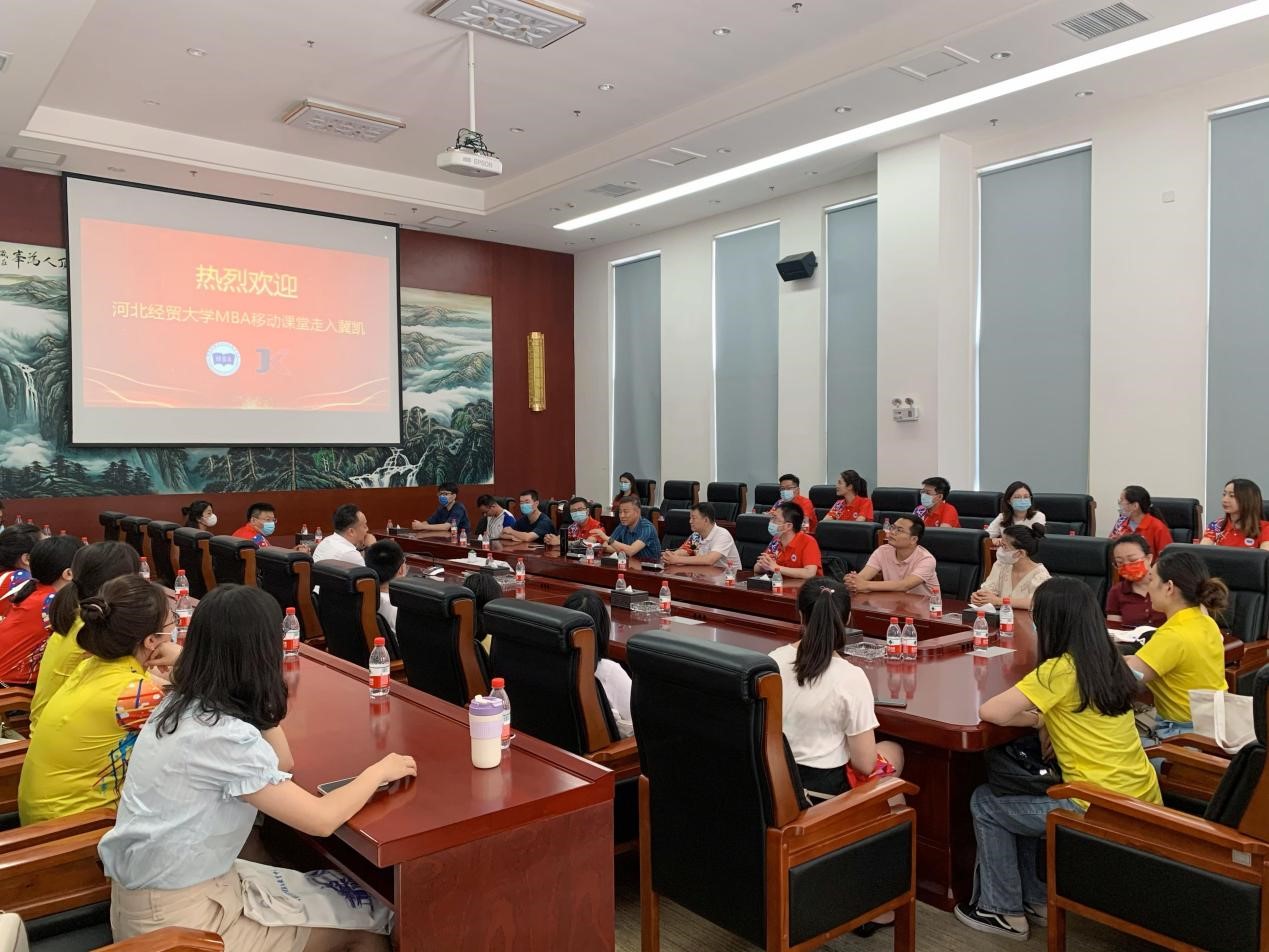 6月25日,365英国在线体育MBA教育中心组织2020级、2021级MBA学员前往冀凯信息技术有限公司(以下简称“冀凯股份”)开展移动课堂教学活动。本次活动由MBA中心执行主任桑银峰老师和MBA中心办公室主任何伟老师带队,公司优秀员工、MBA社会导师——冀凯股份总经理魏二宏接待了师生。