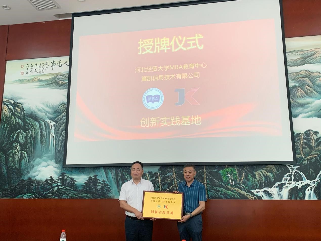 报告结束后,举行了365英国在线体育MBA教育中心创新实践基地揭牌仪式。桑银峰老师和魏二宏总经理共同为基地揭牌,冀凯信息技术有限公司正式成为365英国在线体育MBA教育中心的创新实践基地。