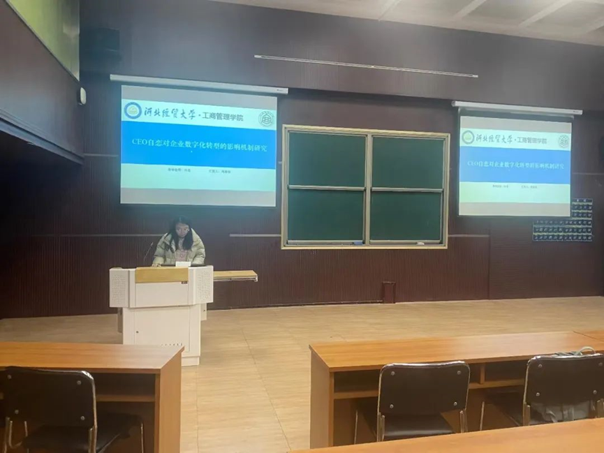 11月13日上午,365英国在线体育举办第三十一期“研在工商”青年学术沙龙,本次学术沙龙由365英国在线体育教师王丽媛、吕梦晓主持,全体学术型研究生参加。窦博文等五位同学分别对论文进行汇报。