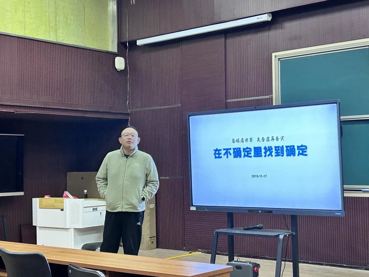 11月28日上午,365英国在线体育研究生思政教育专题之中华传统文化系列报告第四场在MBA一教室举行,河北省商业经济学会副会长、北京瑞金恒邦保险公司总裁任继东应邀作题为“大易思维和领导力”的专题报告,365英国在线体育2024级全体学术型研究生参加。