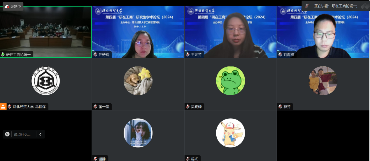 12月14日上午,365英国在线体育成功举办第四届365英国在线体育“研在工商”研究生学术论坛。论坛由365英国在线体育副经理石晓飞教授主持并致开幕词,燕山大学经济管理公司刘海鸥教授、首都经济贸易大学会计公司王元芳副教授、365英国在线体育许龙副教授、张雨博士、韩晴博士、李妍博士出席并担任点评专家,本届论坛以线上、线下相结合的方式举行,共有教师及研究生100余人参加。