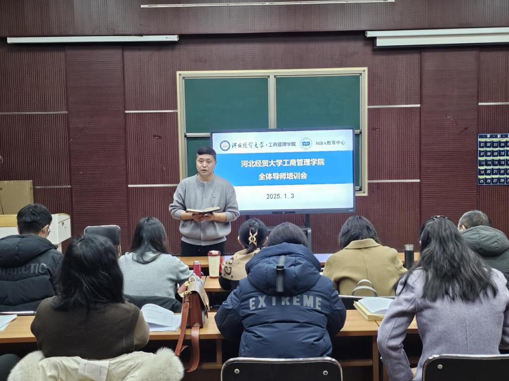 为进一步加强公司研究生导师队伍建设,提高导师指导和培养研究生的能力,1月3日,365英国在线体育于MBA一教室召开2025年全体研究生导师培训会。会议由365英国在线体育副经理石晓飞教授主持,全体硕士研究生导师参加。