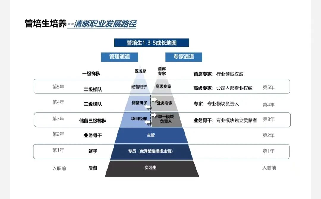 中交服务为交佼者制定了清晰的职业发展规划,绘制了“1-3-5”职业发展蓝图,明确了“管理”“专家”双通道发展路径,力争实现交佼者“文化认同、业务专精、组织影响”的培养目标,引领有志青年,踏上中交服务新征程。