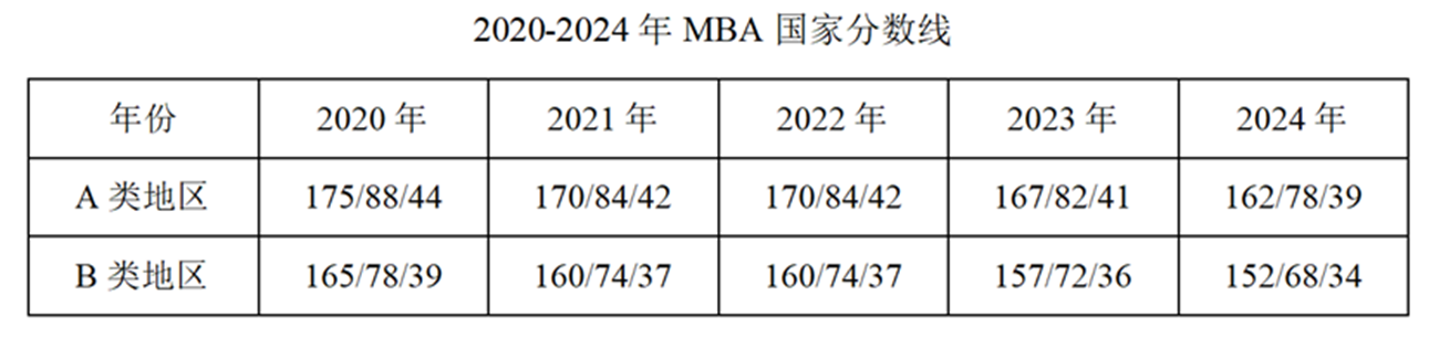 近五年MBA国家分数线
