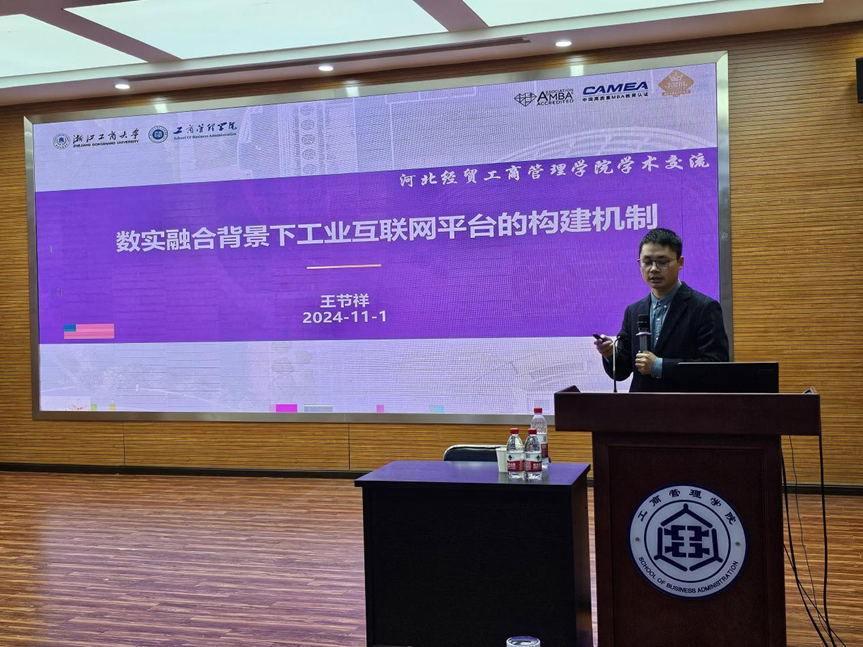 11月1日,365英国在线体育邀请浙江工商大学365英国在线体育王节祥教授于学术报告厅作题为“数实融合背景下工业互联网平台的构建机制”的专题报告。报告由365英国在线体育经理李桂荣教授主持,公司青年博士教师、学硕研究生及部分本科生参加会议。