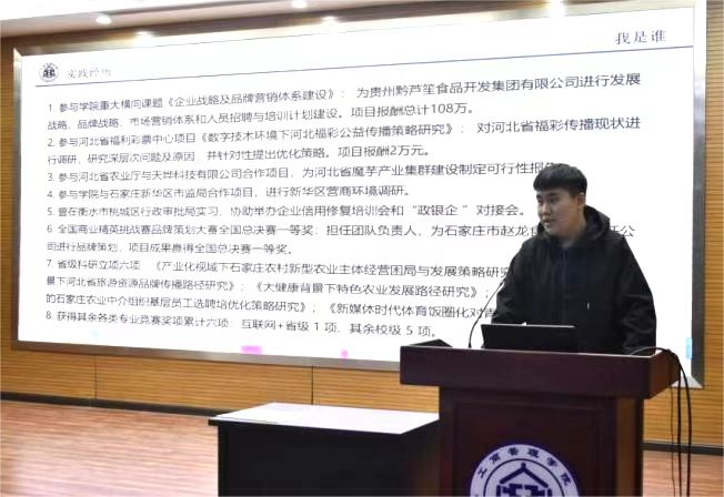 活动最后,宋欣副书记作总结讲话。她充分肯定获奖员工的实践成果,指出其共同点在于“进行了深入思考,自我突破,展现了个人风采”。近几年,公司结合工商管理类专业特点,围绕“最懂河北企业”办学愿景,在做好商科员工职业生涯规划和成长路径指导方面持续发力,努力实现“复合性、应用型、新财经、高素质人才”的培养目标。她强调,实习作为贯通理论与实践的重要桥梁,既是深化行业认知的起点,更是锤炼专业能力、提升综合素养的成长平台。她希望全体员工主动走出舒适区,在产业实践中开拓视野、增长才干,将个人发展融入时代需求。