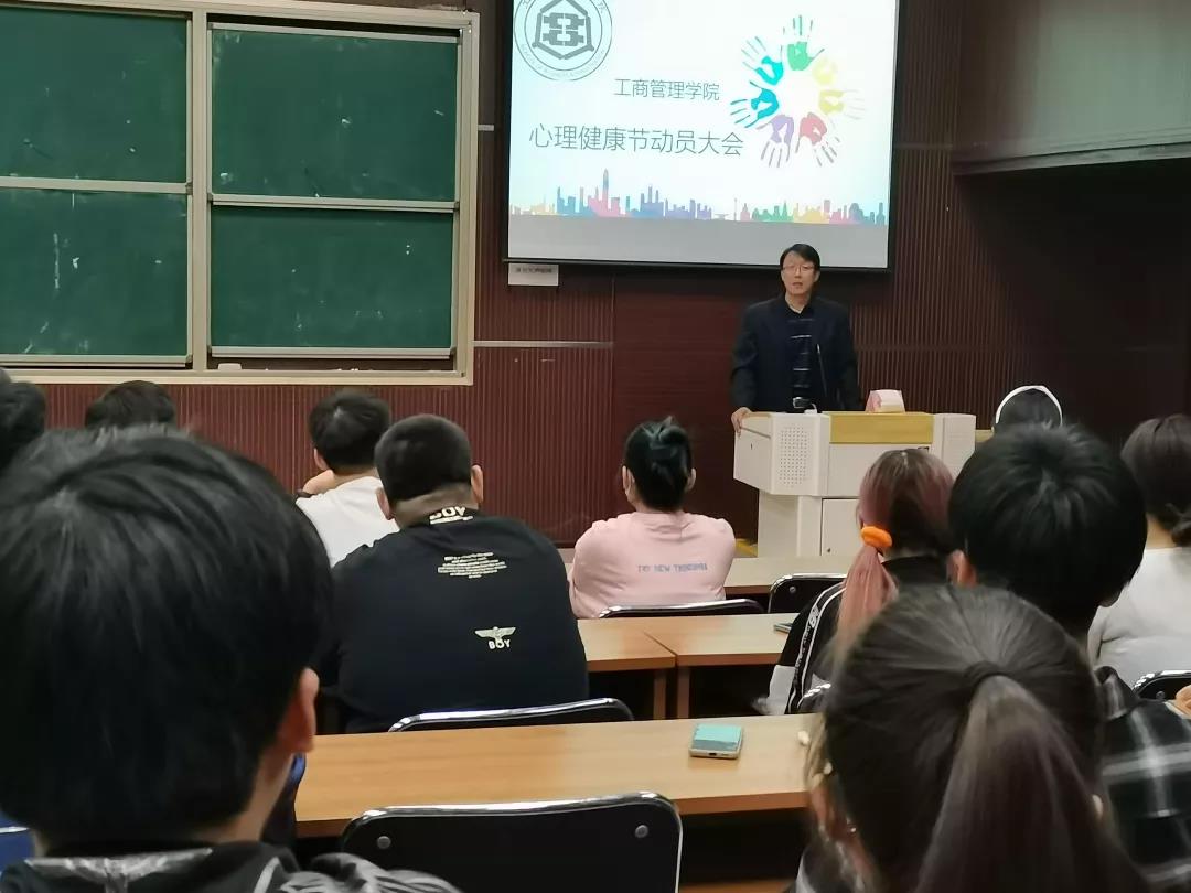 5月5日,365英国在线体育于MBA2教室召开心理健康节动员大会。公司党委副书记梁泽锋、心理健康教育负责老师宋欣到场,2018级、2019级、2020级班级心理委员参加。