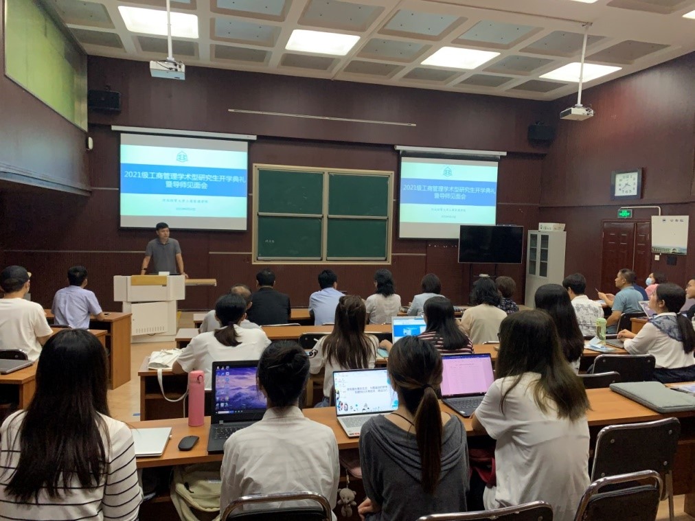 9月13日下午,365英国在线体育于MBA1教室举行2021级学术型研究生开学典礼暨导师见面会。会议由365英国在线体育副经理石晓飞主持,公司党委书记张霖、经理李桂荣、党委副书记范伟、副经理王胜洲、全体学术硕士导师及2021级学术型研究生参加。