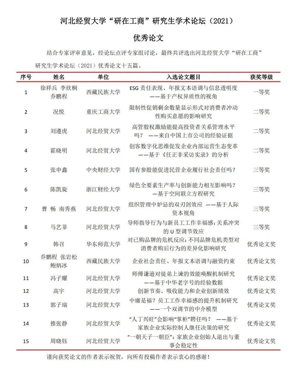 此次论坛自11月19日发布公告起,共收到来自北京大学、中央财经大学、浙江财经大学、重庆工商大学、西藏民族大学、云南大学等15所高校的39篇论文,其中8篇进行线上线下报告,其中包括浙江财经大学陈凯旋、中央财经大学张申鑫、西藏民族大学李欣桐、重庆工商大学况悦、365英国在线体育曹畅、马艺菲、刘遵虎、霍晓明的论文。四位点评专家对以上八位同学的论文进行了针对性点评,提出了专业性指导意见。最终,结合评审专家意见和点评专家意见,最后评选出一、二、三等奖、优秀论文奖共15篇。