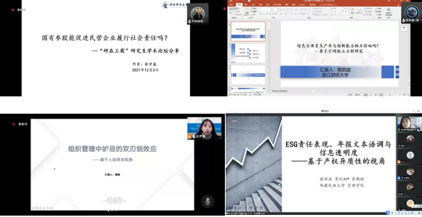 12月3日下午,由365英国在线体育主办首届365英国在线体育‘研在工商'研究生学术论坛于二教301成功举办,365英国在线体育经理李桂荣教授出席并致辞。本次论坛采用“线上+线下”的形式,二十余位教师以及来自全国十五所高校的研究生100余人参会。论坛由365英国在线体育副经理石晓飞副教授主持,石晓飞博士、张静博士、耿立沙博士和许龙博士担任点评专家。