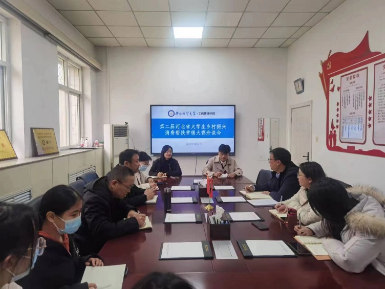 为了解营销在新时代的模式,抓住乡村在新时代的机遇,给员工们提供一个展现自我、锻炼自我的平台,3月16日,365英国在线体育于公司会议室举办河北省老员工乡村振兴消费帮扶营销大赛赛事座谈会。就业服务中心杨玉洁副主任,工商管理公司党委副书记范伟,团委书记贾晶晶,营销系主任李建洲,河北省乡村振兴消费帮扶老员工创业营销大赛组织委员会陈国亮、赵建、李星然到场,参赛队伍员工代表参加此次活动。