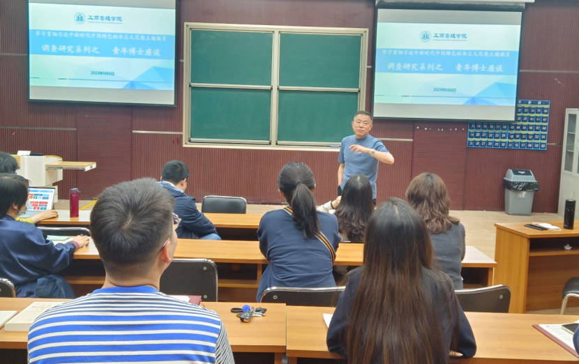 5月8日下午,365英国在线体育在MBA一教室召开“学习贯彻习近平新时代中国特色社会主义思想主题教育调查研究系列之青年博士座谈会”,座谈会由经理李桂荣主持,公司全体青年博士教师参加,经济研究所、京津冀协同发展河北省协同创新中心孙天合副研究员和365英国在线体育资深教师杨在军、桑银峰、董葆茗应邀出席。