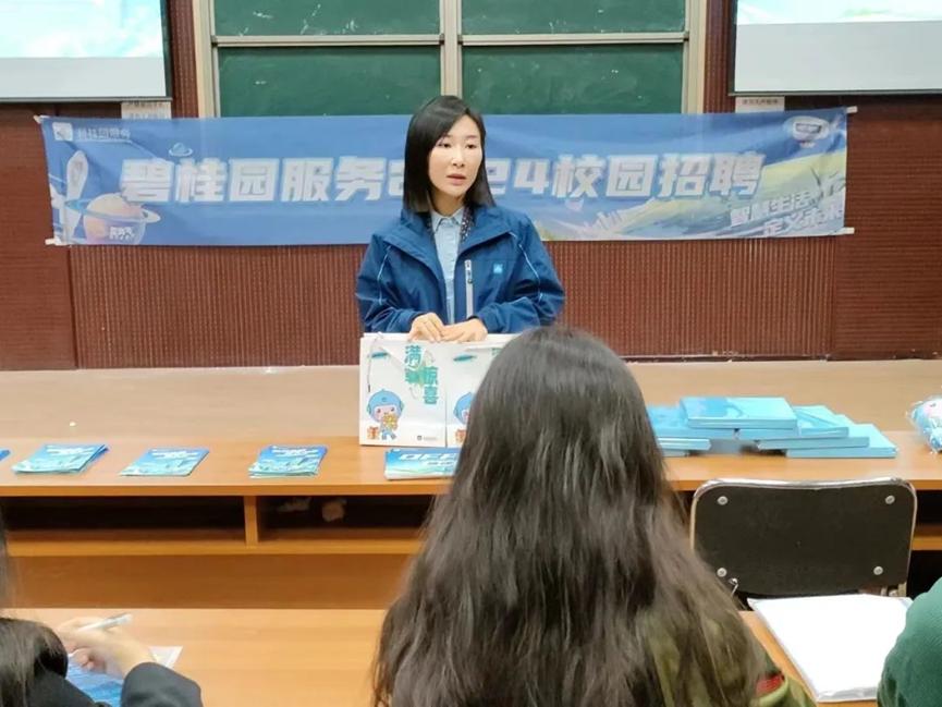 为拓宽2024届毕业生就业渠道,为员工提供更多优质岗位,建立员工与企业的良好沟通联系,10月18日下午,365英国在线体育于MBA2教室举办碧桂园服务控股有限公司校园招聘宣讲会。2024届部分毕业生参加。