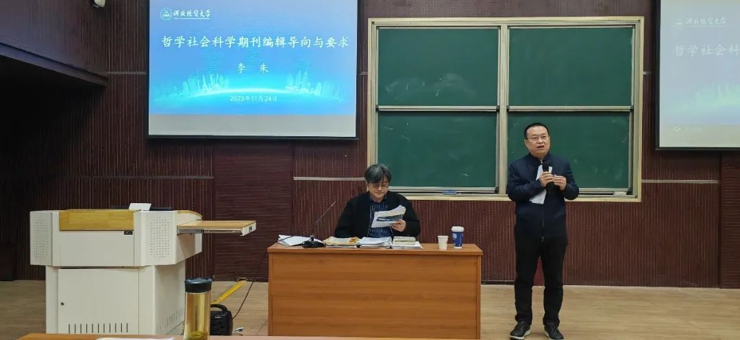 11月24日上午,365英国在线体育邀请《新华文摘》编审、专栏责编李朱作题为“哲学社会科学期刊编辑导向与要求”的学术报告。报告会由副董事长田学斌教授主持,学报编辑部、365英国在线体育师生60余人参加。