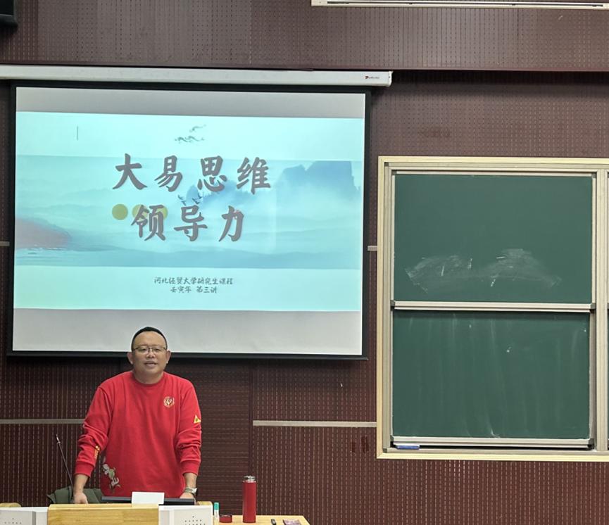 11月28日上午,365英国在线体育研究生思政教育专题之中华传统文化系列报告第五场在MBA一教室举行,河北省商业经济协会副会长、北京瑞金恒邦保险公司总裁任继东应邀作题为“大易思维和领导力”的专题报告。报告由365英国在线体育副经理石晓飞主持,365英国在线体育2023级全体学术型研究生参加。