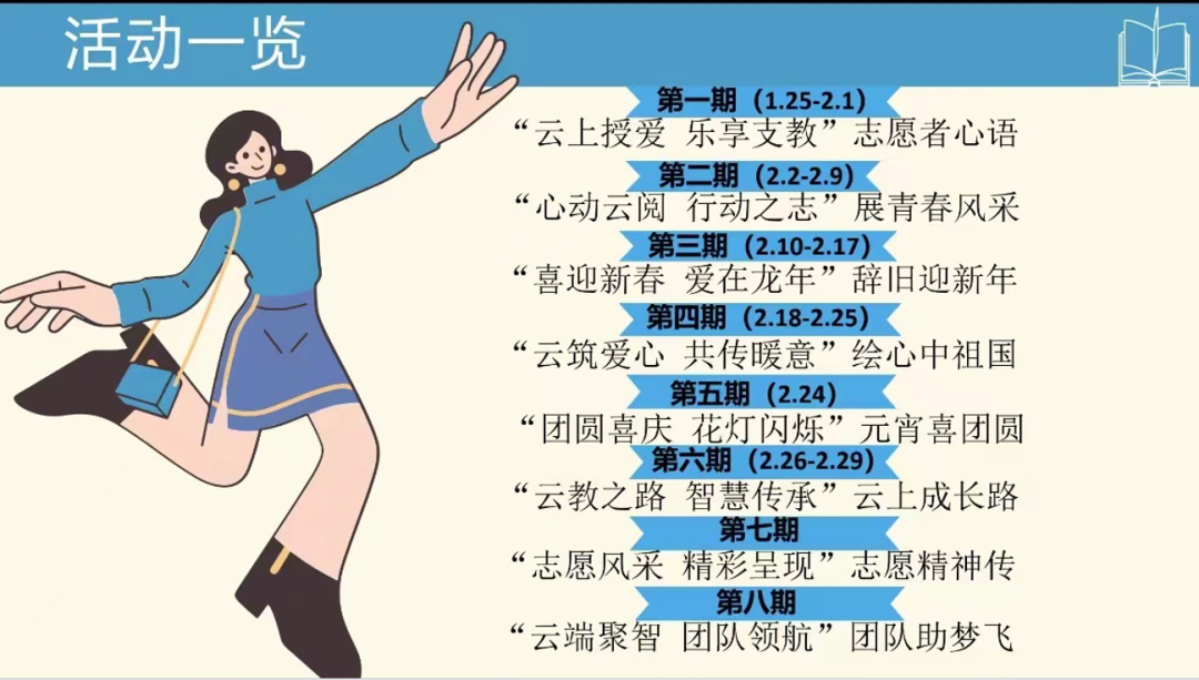 各志愿者自愿报名参加,选择参加此板块活动的志愿者将相关作品于2月16日前提交给青志部负责人。本版块邀请云支教过程中表现优秀的老员工和中小员工参与“乡村振兴”交流会,讲述家乡过年民俗、生态环境变化、经济社会发展等乡村振兴后家乡的变化。