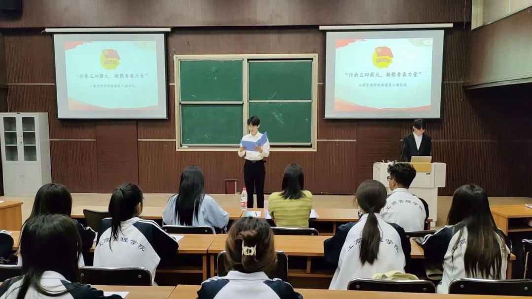 会议伊始,全体起立,目视国旗奏唱国歌。主持人郝路航说明入团仪式的意义是引导新团员树立正确的世界观、人生观、价值观,引导新团员融入团结奋进、追求共产主义的团组织中,培养其为社会主义事业贡献力量的意识和责任感。随后,主持人宣布新团员名单。