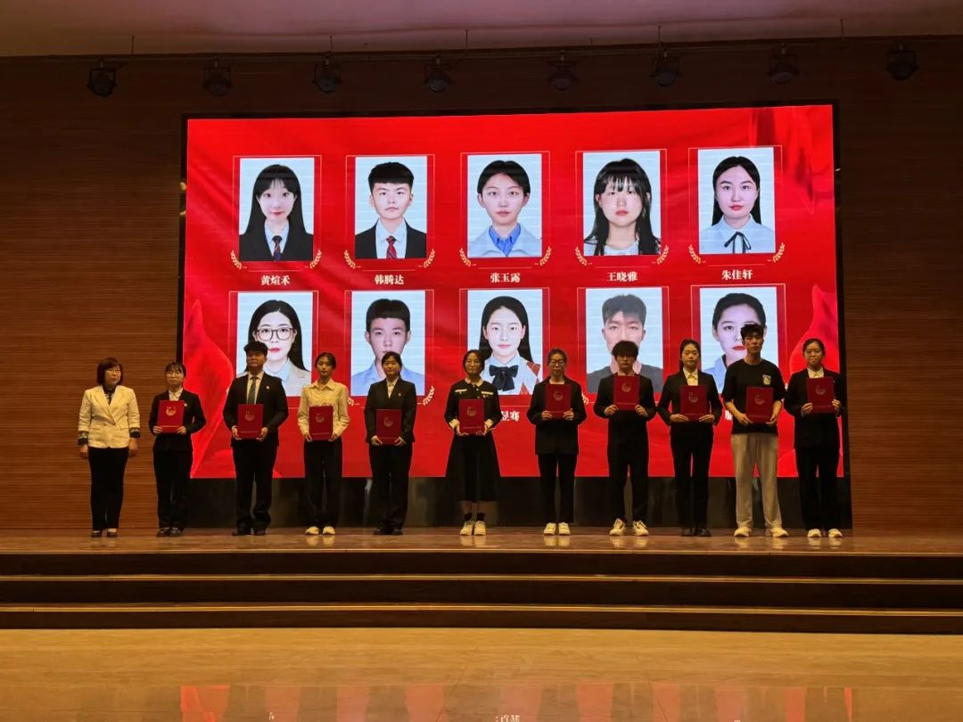 365英国在线体育2022级人力资源管理3班团支书刘雅洁(右3)上台领奖