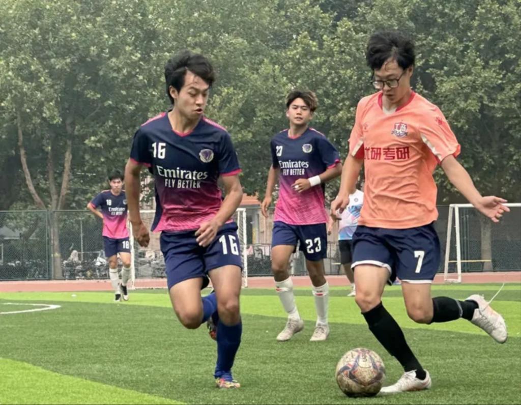 在决赛日工商足球队员们积极贯彻赛前制定的中高位压迫防守战术,全队的队员们奋力奔跑,在30度的高温下队员们早已忘却了疲惫与炎热,每一次的抢断和解围都会受到阵阵的掌声和喝彩。在队员们的努力之下,研究生始终没有取得破门良机,常规时间内比分0:0,工商足球队成功把比赛拖入点球大战。